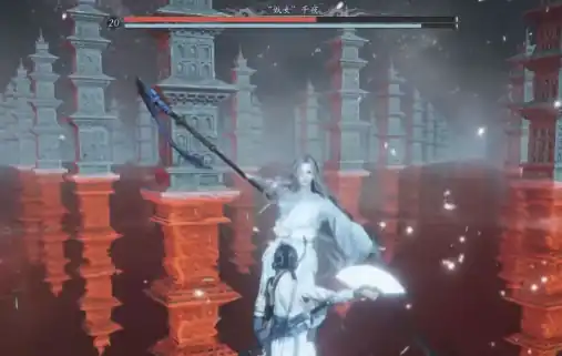 这就是地宫深处的一个boss,还会拥有两个不同的阶段,战斗的难度非常的大。在第1个阶段时就是普通的状态,等到第一管血全部被耗尽之后,场景就会变暗,此时就会进入到第二阶段,也会变身成女妖。等到血量接近半血时,就会进入到第三阶段,会变成白发雪女。