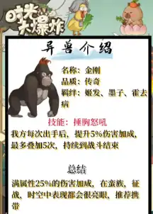 在游戏中玩家看到很多不一样的异兽,然后这些异兽所具备的实力也会有所区别。玩家所需要做的就是合理的分析,然后从中找出一个相对比较合适的。时光大爆炸异兽哪个好?如果玩家有兴趣就可以跟着一起来了解一下,下面的这几个其实都很不错。