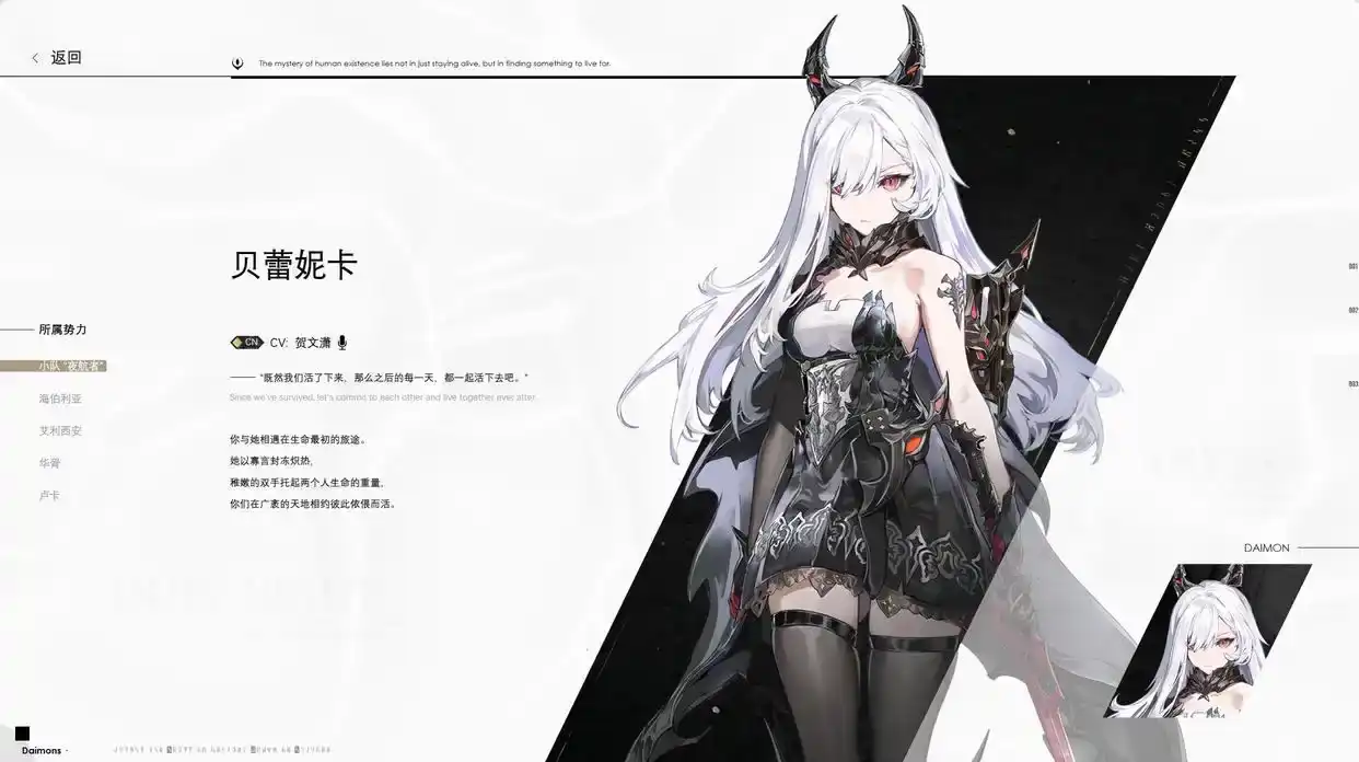 贝蕾妮卡作为团队中的“夜航者”,以快速、精准的攻击能力成为团队的输出核心。她擅长使用匕首与枪械武器,在战斗中能够通过致命的暴击伤害迅速清理敌人。她的技能设计偏向高爆发,尤其是在面对单体目标时,能够在短时间内打出成吨伤害。战斗中,贝蕾妮卡的灵活性让她既能在敌人间自由穿梭,又能有效规避伤害,是输出与生存兼备的典型代表。