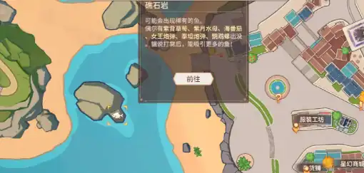 玩家可以直接通过地图搜索的方式,深海口所在的位置就在海滩的边上。玩家可以点击地图上的小鱼标志,一般在这些地方所能钓到的鱼也是不一样的。玩家可以跟着一起来看看,了解这些地方有哪些鱼。