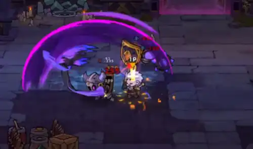 之后攻略它后,再打几小关就能进入到最后一个商店中,该商店中大家需要最后拉一波宝藏的质量,随后就能见到最终boss了,这最终boss有两个,一个是恶魔管家,一个是魔王,这其中恶魔管家会先出场,在打它的时候大家需要多去拉扯然后剩血药,血药需要保持在80%以上,之后在去打魔王就能好打不少了,魔王的攻击方式比较死板,靠背板很容易就能过,在打过之后游戏就通关了。
