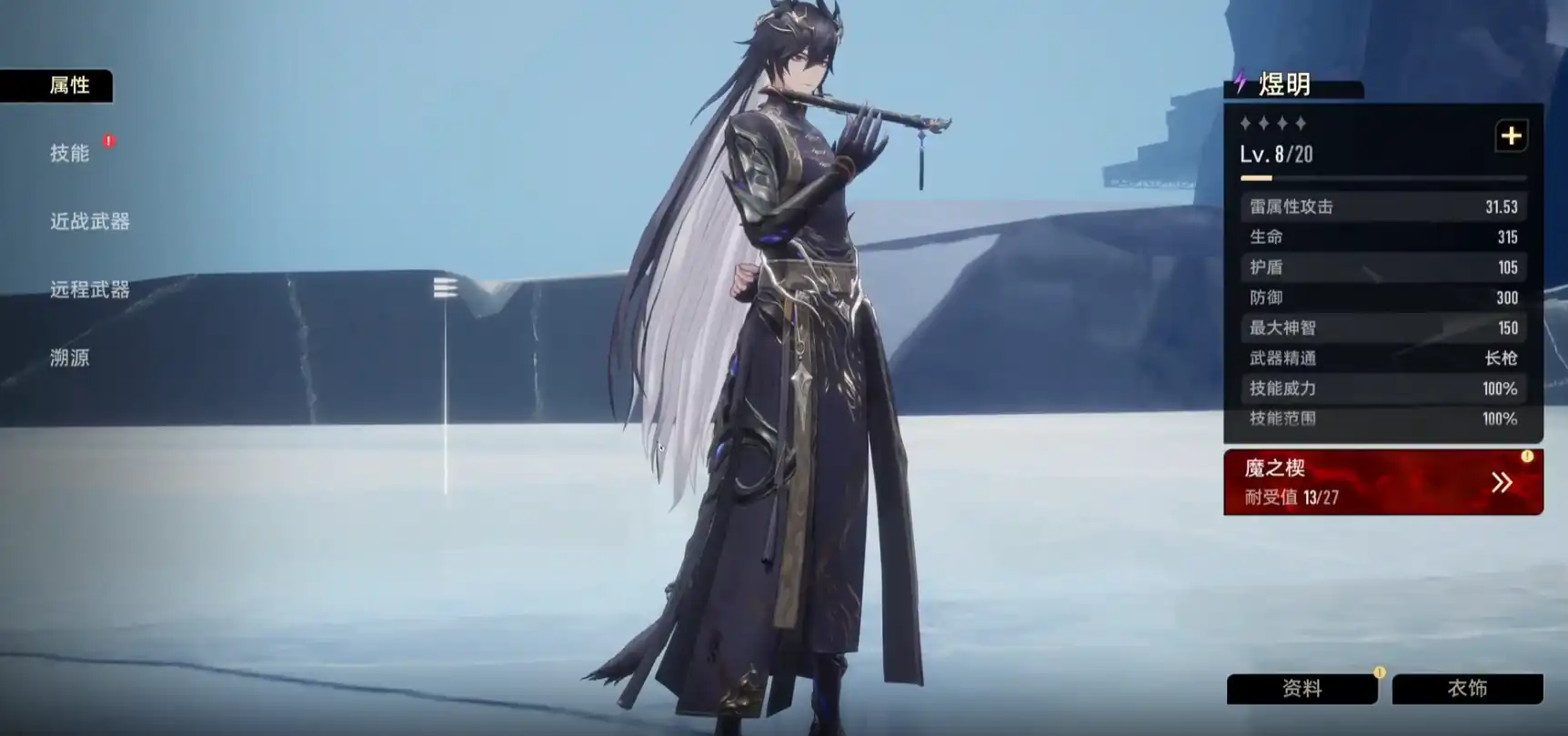 3、煜明。这是目前游戏推出的比较帅气的男性角色,目前游戏里的男角色不多见,所以他也是非常有代表性的,雷属性的攻击角色,擅长使用笛子,非常优雅具有韵味的角色,在战斗时比较容易对敌人造成暴击伤害,攻击力很强悍。