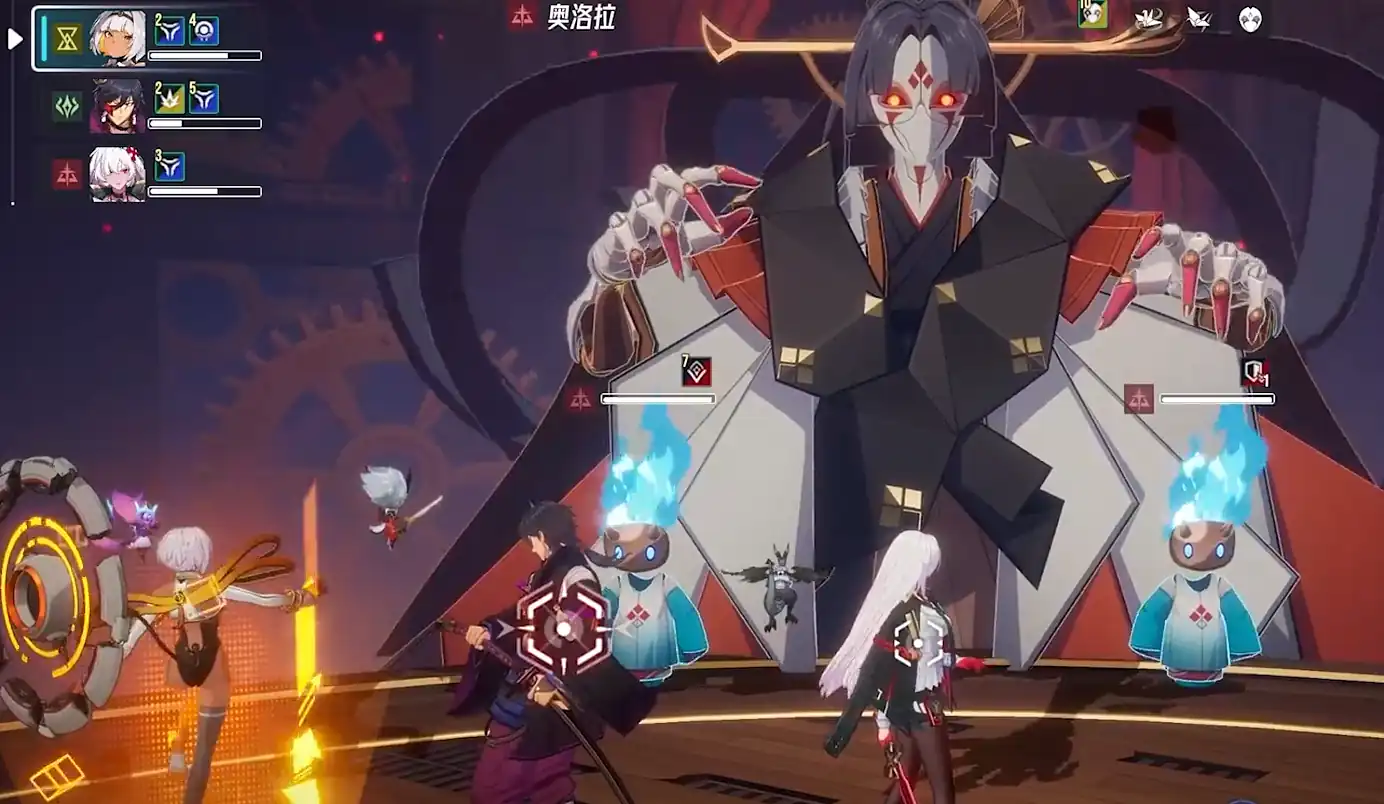 她的终结技会连续6次,连续提升一位队友12%的行动进度,每次在释放的时候都会自动旋转当前行动度最低的队友,并且为其附加一层的数据流,自身则会得到4层的备份效果。