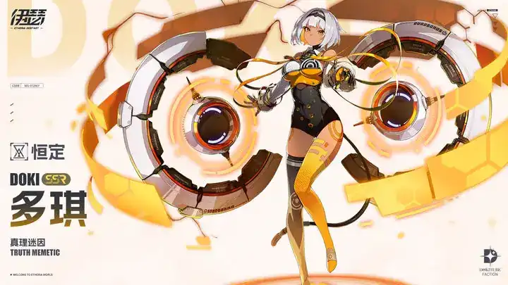 多琪在形象上面非常具有特色,一头白色短发,黑皮辣妹的形象,恒定的原质属性,生命值和攻击力都比较优越,能力方面也很突出。普攻”伪代码”,对单体目标打出220%伤害,且有75%的几率给自己添加一层“备份”,备份会受到减益效果影响的其他友方行动前,消耗1层同时净化该单位的2个减益buff,冰附加1层“数据流”,备份上限是6层,不能被驱散。