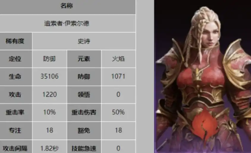 要说伊索尔德的战斗技能就是追索复仇,当他们对攻击目标造成300%的攻击力以及8%的火焰伤害的时候,这个时候能够让敌人受到伤害,却可以为自己的队友提供防御加成,所以说有伊索尔德存在的地方,整个团队的防御能力将会变强。