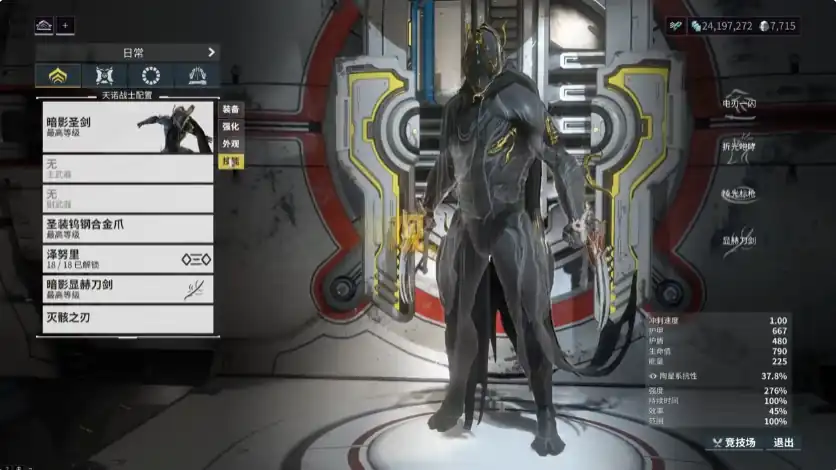 1、圣剑,这是很经典的初始战甲,生命值均衡,护盾能量都比较平衡,代表性的招式“剑术大师”,能放出强大的能量剑攻击四周的敌人,喜欢近战的小伙伴可尝试使用,技能方面比较好上手,能快速适应相关的战斗操作。