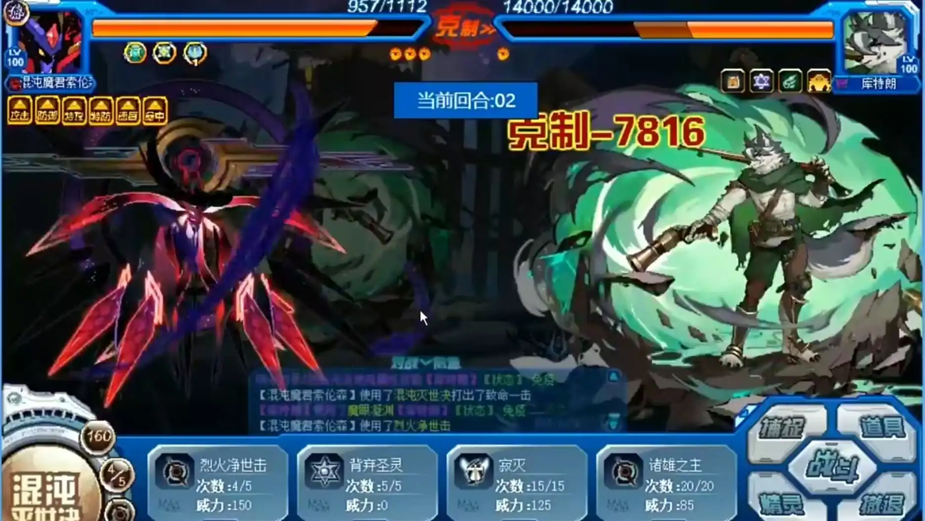 打第4个boss的时候是采用的是帝皇之御,闪光猛虎王为主力,德罗西尼可以作为替补。首发直接帝皇之御守,御八方自暴,接下来攻击附加必先必爆效果,最后一个打库特朗的阵容就选择混沌魔君索伦森作为主力,也可以在很短的回合内直接结束战斗。