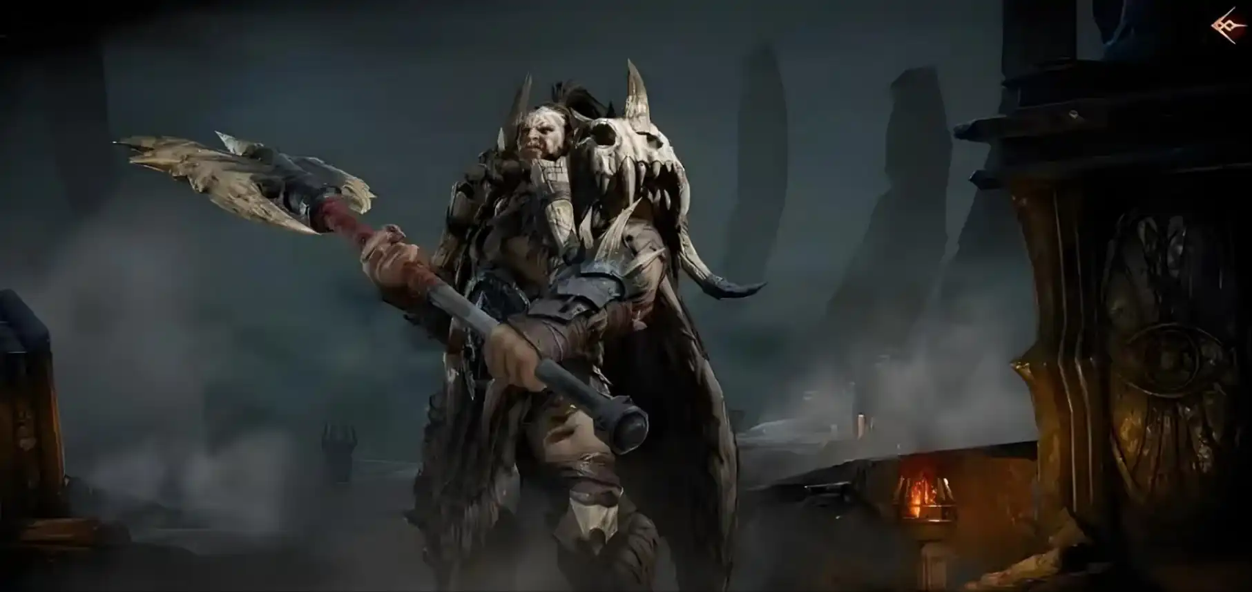 他的角色技能分为了四部分,第一个部分是它的防御光环,在大角斗场战斗当中提升所有友方目标45%的防御。反伤被动技能是获得20%的伤害减免效果,受到伤害的时候,有50%的概率对伤害来源造成闪电派生伤害。战斗信徒对攻击最高的有方目标是加队友保护状态持续十秒钟。而且这个状态是无法被移除的,在这个之后对自身和该目标施加持续十秒的目标最大生命值护盾和二级防御增加状态。该技能在战斗开始的时候必定被释放,而且这次技能不需要施展动作。他的狂怒屠戮对范围内的敌人目标造成闪电伤害并减少目标30%威能,而且75%的概率是加二级攻击,降低持续十秒钟。