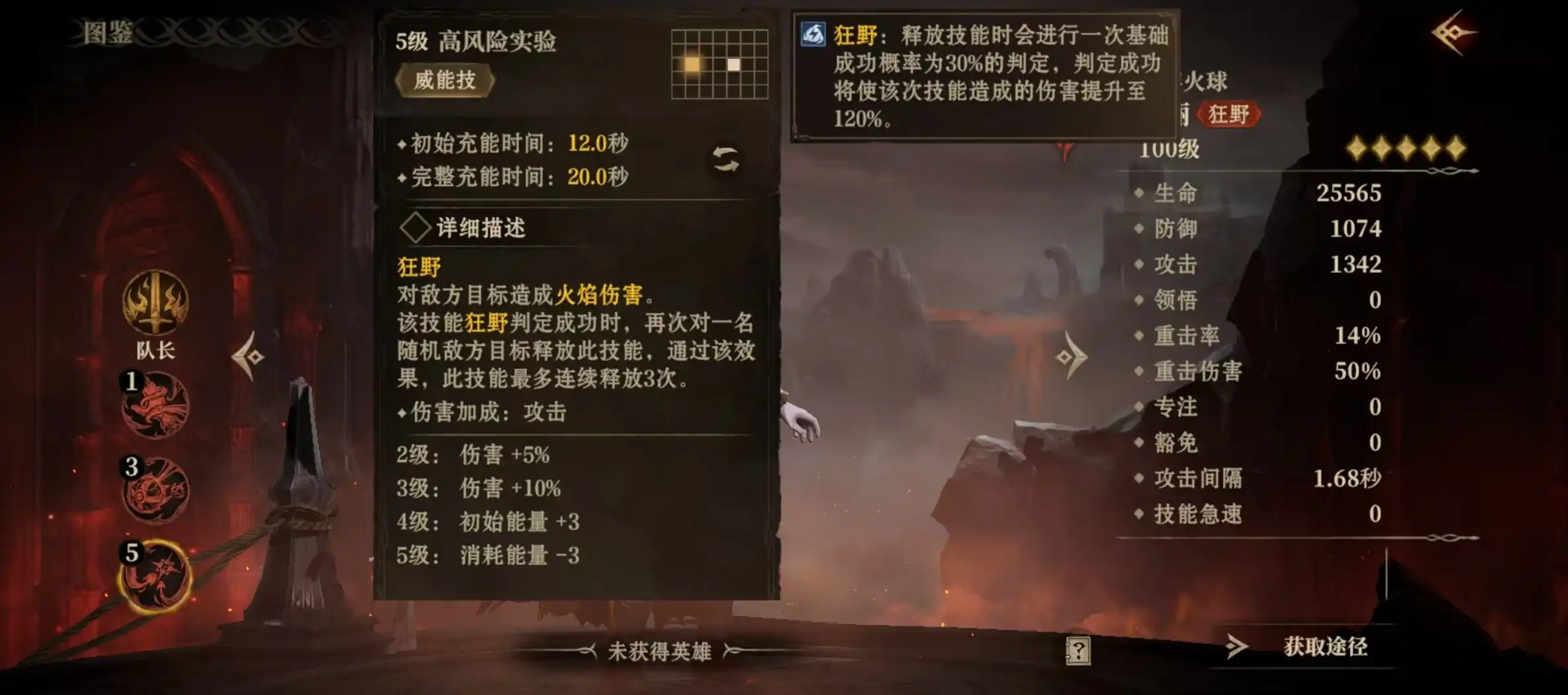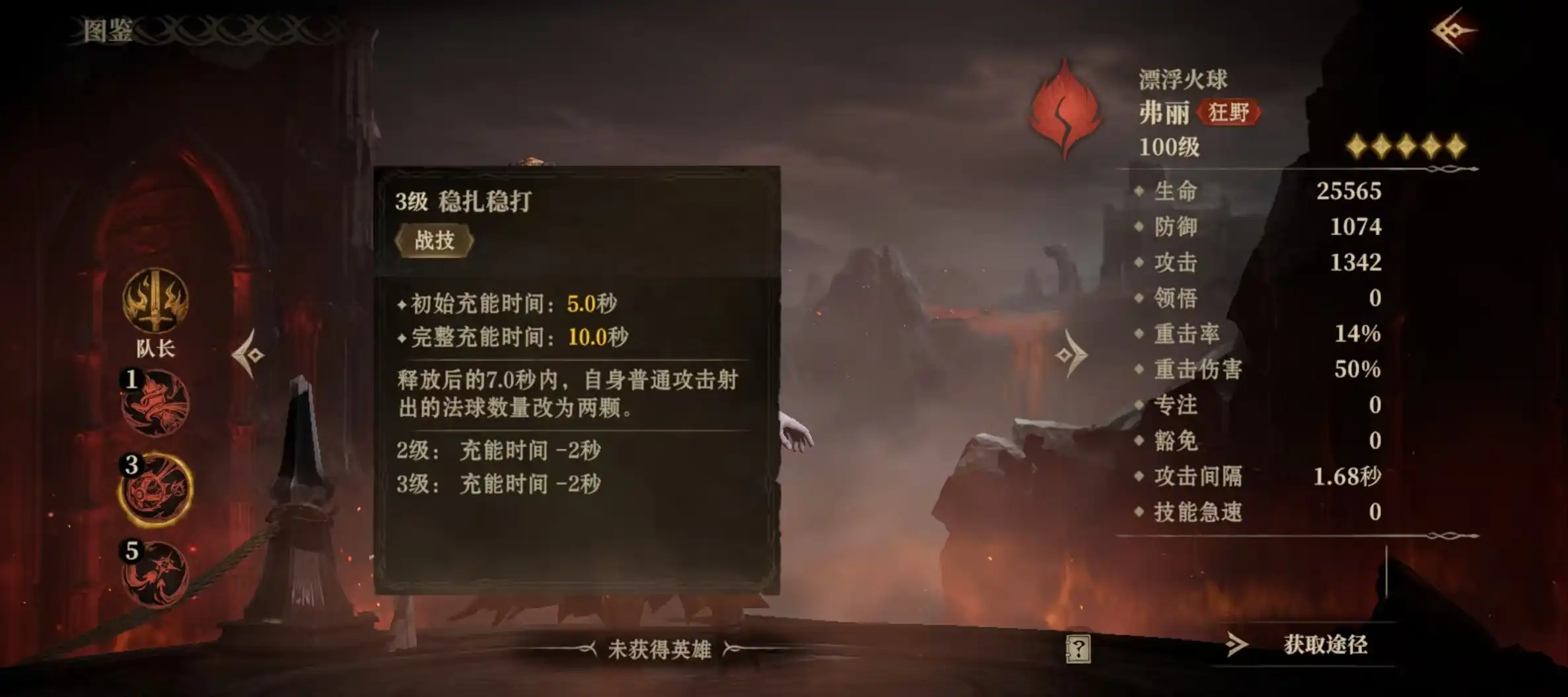 在技能方面,弗丽是具有队长技能的,带来的是重击伤害光环,所有战斗中都能生效,提升24%重击伤害,中规中矩的属性加成,并不十分推荐。被动技能难得好运,如果友方狂野英雄判定成功,那么自身下一次普通攻击伤害提升60%,且被视为狂野。战绩稳扎稳打,释放后的7秒内,自身普通攻击射出的法球数量改为两颗。威能技高风险实验,对敌方目标造成火焰伤害,该技能狂野判定成功时,对另一名随机目标释放此技能,通过该效果最多能连续释放三次。