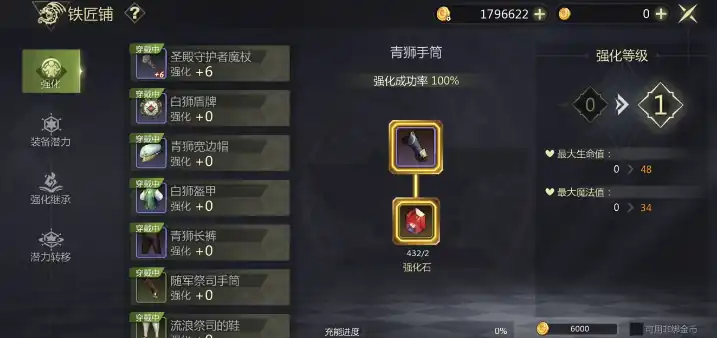 游戏的强化一般都是以充能值为主。在装备的下面,玩家就可以清楚地看到数值,如果强化失败也会累积充能值。充能值一旦占满了之后,自然就会100%成功,能够起到一个保底的作用。