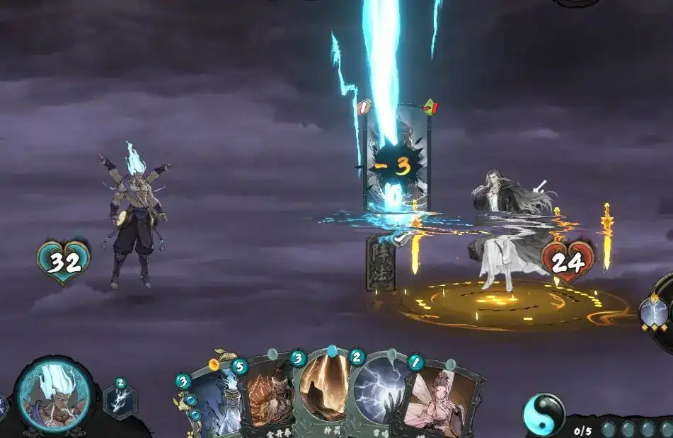 2、雷神九霄:其主动技能和被动技能的效果则是围绕着雷元素展开的,可以善于利用雷元素对敌人形成“直接伤害”。若是持有专属雷系宝物的话,那么可以提高主动技能的效果。使用天象可从造成敌人全体雷击伤害、驱动宝物造成雷击伤害、我方卡牌带电(使用以后会对其造成点击伤害)三个作用中进行选择。