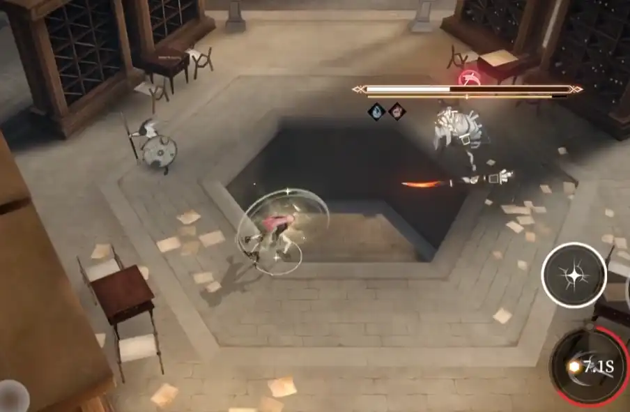 该关卡的难点有两个,而最主要的就是要帮助法尔哈德躲开沿途的机关,NPC的血量并不是很多,而且在机关命中他的时候会让其在原地僵直,所以如果不加以干涉的话他会很容易被机关卡死。可以使用角色的保护技能让机关启动和关闭的频率发生改变,保护NPC顺利通过,也可以用角色去挡住来保护他通过,法尔哈德是自动向前走的,所以最好要紧跟在他身边才能完成保护。