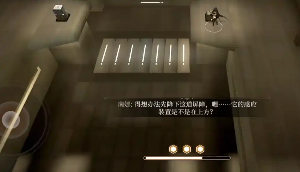 这一关的主要难点是在第二次怪物遭遇战中,当大家通过中央计算机上方的机关进入第二个房间以后,就会在该房间里遇到三个怪物,其中最大的那个就是boss,该boss的攻击力非常强,并且还会蓄力技,如果完整的吃上他两次蓄力技哪怕不死血条也会被直接清空,所以在打这部分的时候,要么选择切换成沙玛什直接开大硬碰硬,要么就在boss身上闪光发出的瞬间使用瞬步离开他的攻击范围,利用他的出招间隙攻击他是最好的选择。