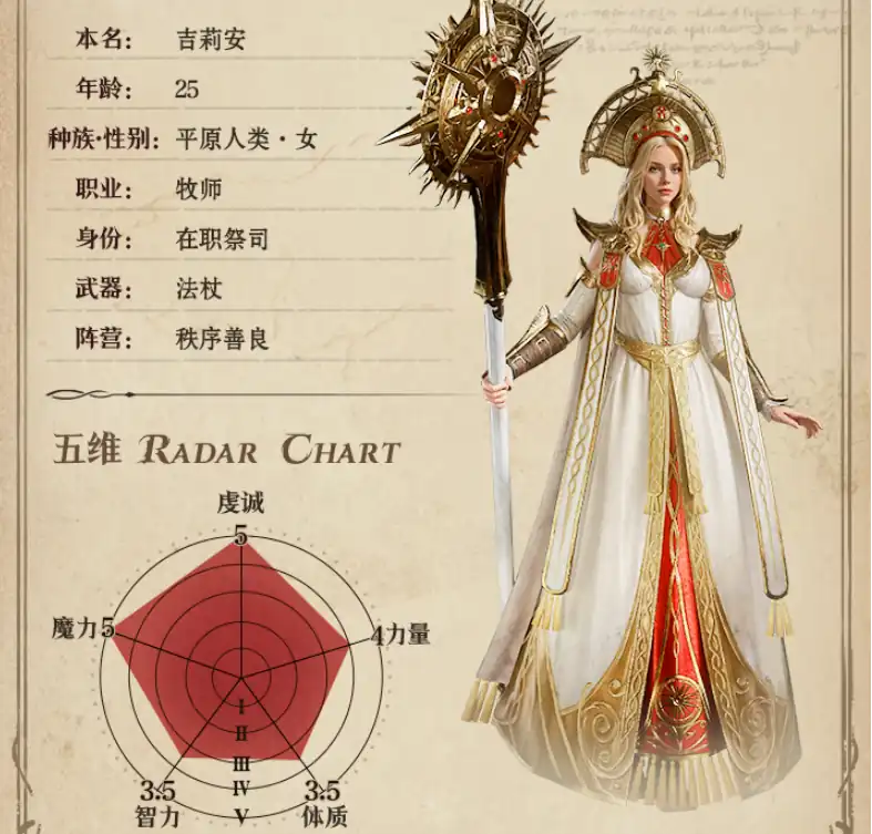 明光牧师的本命叫做吉莉安,是一名牧师职业,使用法杖的武器,主要作用就是给队友提供治疗和增益,是队伍中不可缺少的奶妈,非常核心的英雄。被动”维生术”,她会对生命值低于一定比例的队友进行治疗,并且在治疗时给该友方施加1层持续回复状态,能持续一段时间。,该被动搭配战技选取当前生命值最低的友方治疗的机制,能及时的将陷入到危机的友方给到支援效果。