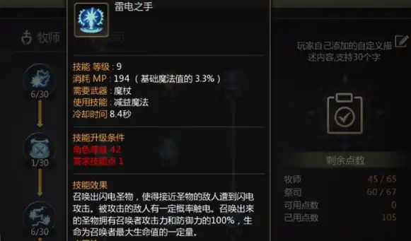 在选择正确的加点之后,就可以拥有比较出色的优势。接着就应该注重于连招的搭配,可以先释放雷电之手,接着选择释放神圣之手,能够有效增加光属性伤害。用电光剑有效配合闪电风暴,就可以轻松的打出一个高引力伤害。