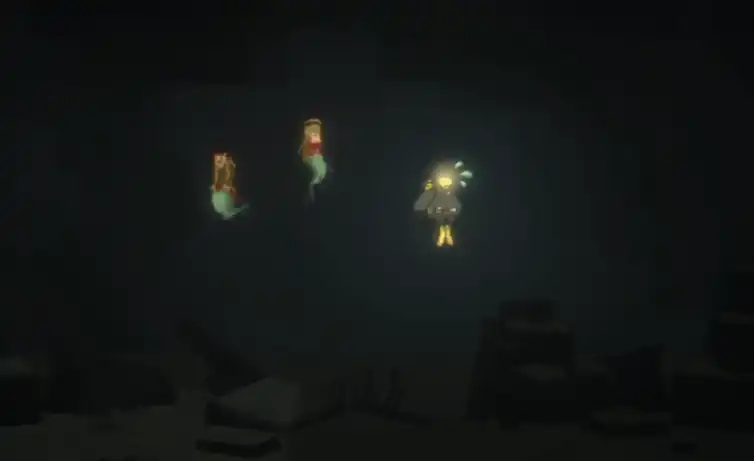 一进入鲛人村带领我们进入的两位小鲛人们,就向着村长表达了希望借助人类科技来解决目前村庄危机的想法,但目前村子并不信任人类,需要我们来取得村民的信任,随后村长给了我们一面镜子,以后可以在白天的时候随时瞬移到村子内。
