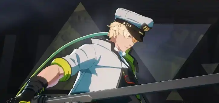 他整体的装扮充满了巡警的风格,让人一眼望去就能感受到他那独特的气质,首先映入眼帘的是他那一头耀眼的金发,显得格外潇洒,与之相配的是一顶白色的警帽,这顶警帽的设计十分精致,展现出一种不羁的态度,再看他的穿着身上的服饰以黑色为主色调,而他手中所携带的武器更是引人注目,那是一把长剑,剑身上什么图案都没有。