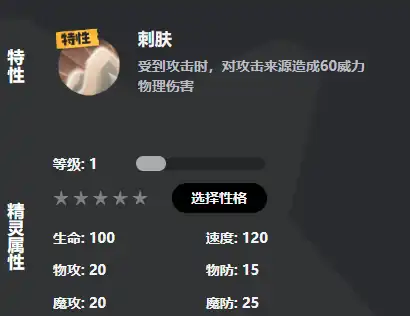 该精灵的特性叫做刺肤,当你受到攻击时,对敌人造成60点伤害反弹,有点类似于反伤甲。然后可以从一只很小只的石蜥,进化成为令人恐惧的存在。血脉技能叫做能量刃,可对敌人造成物理伤害,每命中一次都会叠加三十多威力。