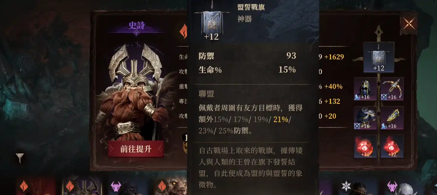 荷鲁斯:荷鲁斯(俗称火矮人)是团队中的主坦,主要职责是承受伤害。装备推荐使用盟誓战旗,能够为自身和队友提供范围性的防御力提升。作为坦克,他的重点是提升防御属性,以确保在副本中能为队伍提供足够的保护。