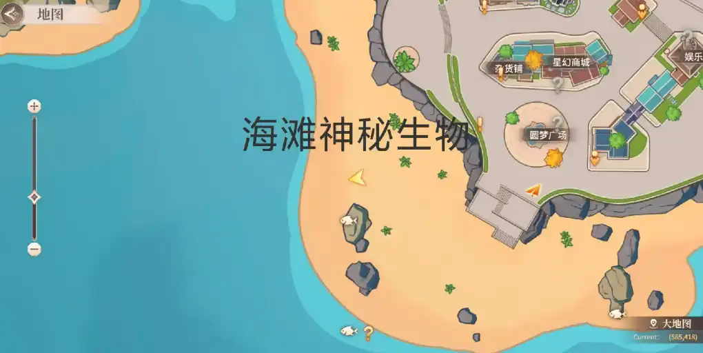 这个谜团的线索相对简单,先从星乐小镇的圆梦广场出发,沿着道路一直走,你就能找到通往海滩的入口。到了海滩后,往右一转,就能看到那神秘的生物。任务区域附近会有亮光提示,靠近就行。