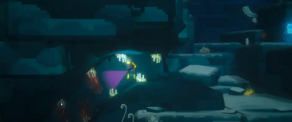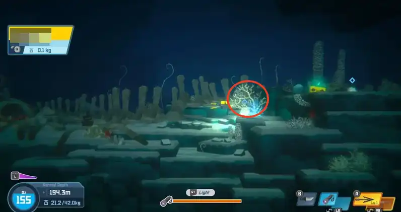 在隧道的分叉口,向上走然后向左转,在那里就可以看到鲸鱼骨头和管状珊瑚,收集3个珊瑚后将其带给米玛,会给予玩家一定的奖励。注意这里的鲸鱼骨并不是几个单独的物件,而是一整个残骸沉淀在海底,从鲸鱼头的部位向右边走就可以看到发光的珊瑚了。