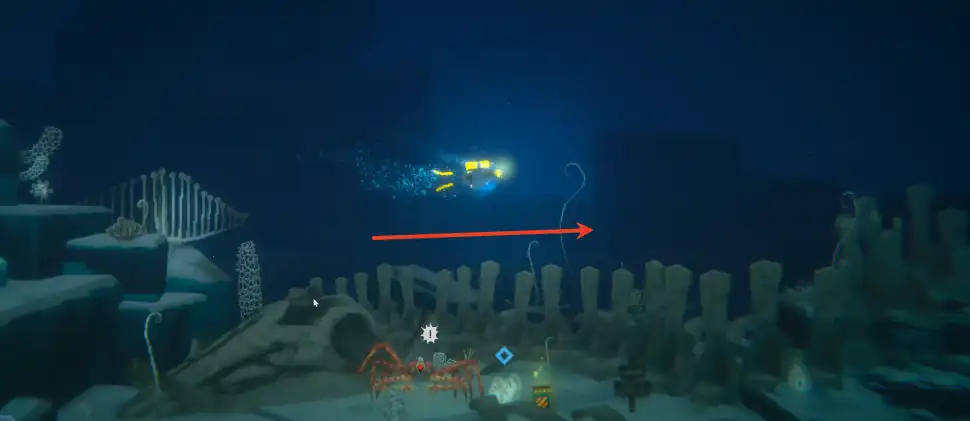 注意鲸鱼骨旁边还有一只大红蟹,不要主动去攻击它,尽量不要主动去招惹它,采完珊瑚就返回,路途有一点远,需要足够的氧气和必要的武器。