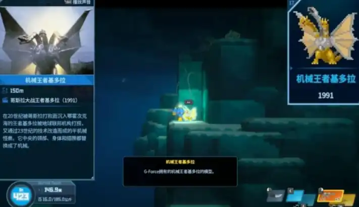 王者基多拉藏在鲛人村村长的家里,顺便还能蹭一碗村长招待的热汤。盖刚的模型则位于冰河通道自上往下数第二层的左侧小地图中。这个地方需要完成解谜任务,通过运送建木果实来融化冰墙才能进入。在冰河区域的第一个冰洞窟中,靠近金龙雕像右侧的位置,可以找到迷你拉的模型。不过要注意,这里是冰鳐Boss战场地,保持警惕。至于哥斯拉1995,它的位置很有纪念意义,正是在深海区的僵尸鲛人监狱门口,也就是玩家首次见到哥斯拉的地方。
