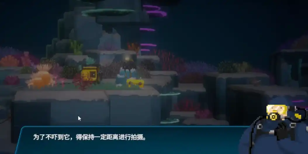 在任务开始之前,别急着下海,这个拍摄任务有一些前置步骤需要完成。第一,这个任务只能在晚上进行,白天再努力也是白搭。第二,要先完成浮游生物的饵料任务,需要采集五个昆布。昆布随处可见,随手采一采就能搞定。完成这些后,耐心等摄影师通知任务开启。别跳过剧情,重要提示往往藏在其中。