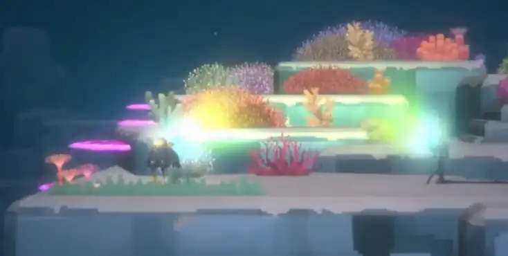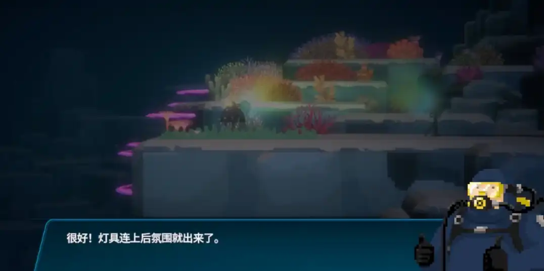 首先,灯具的位置其实很好找,直接向右侧探索。走到海底比较显眼的地方就能看见灯具的位置,白天它可能看起来平平无奇,但夜晚它可是任务的关键道具。