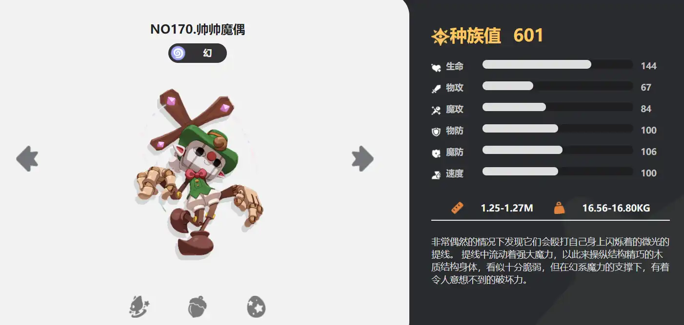 帅帅魔偶的背景设定非常有趣,它能够通过身上闪烁微光的提线操控木质结构身体。尽管外表看似脆弱,但在幻系魔力的支撑下,帅帅魔偶具备惊人的破坏力。