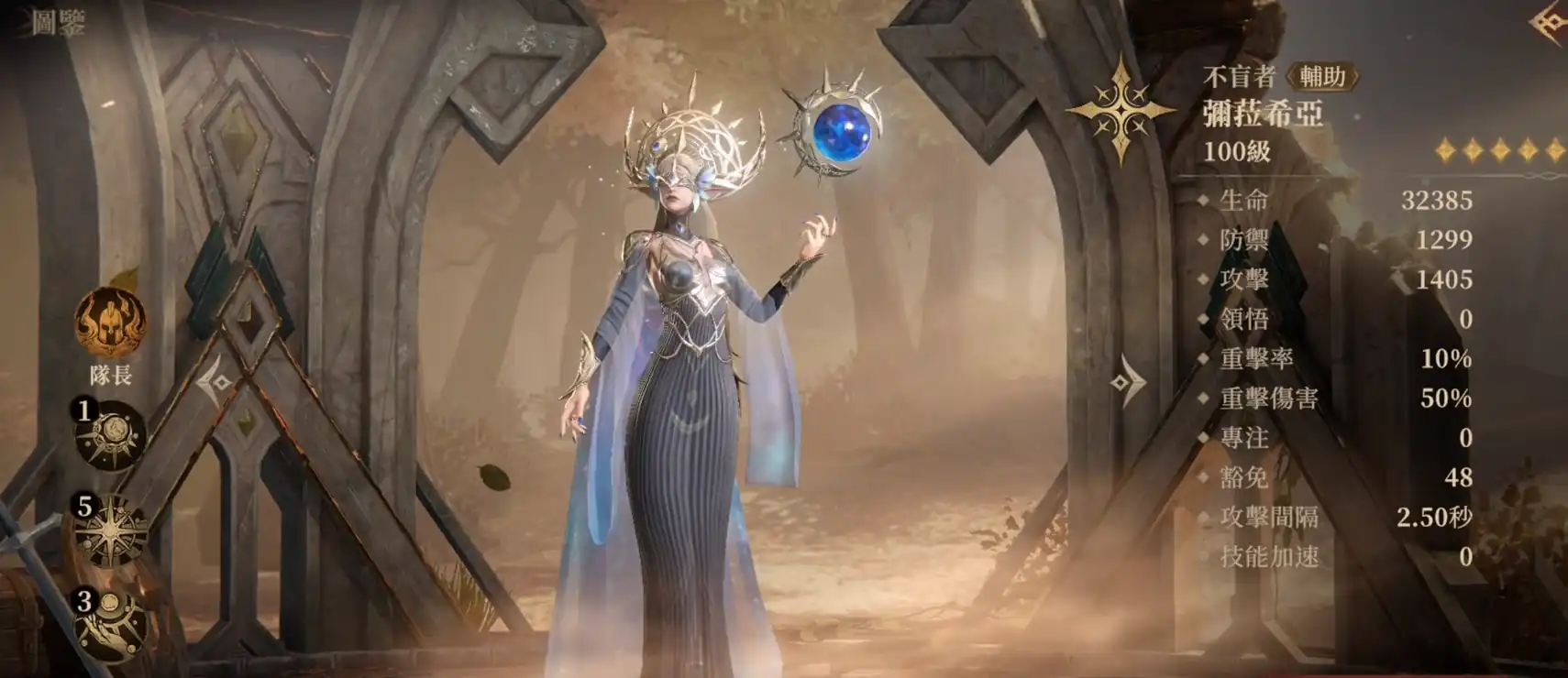 弥菈希亚:一名具有复活能力的光系辅助英雄。她可以为队友提供免受死亡攻击的保护,并提升队友的Hp属性。如果队友受到强力攻击,她还能对队伍施加免伤效果。对于远程攻击角色,弥菈希亚的技能还能带来10秒隐身效果,使其更加安全。她的大招尤其强力,能够为全体队友提供复活,显著减少队伍的死亡人数,是高难关卡中不可或缺的辅助。