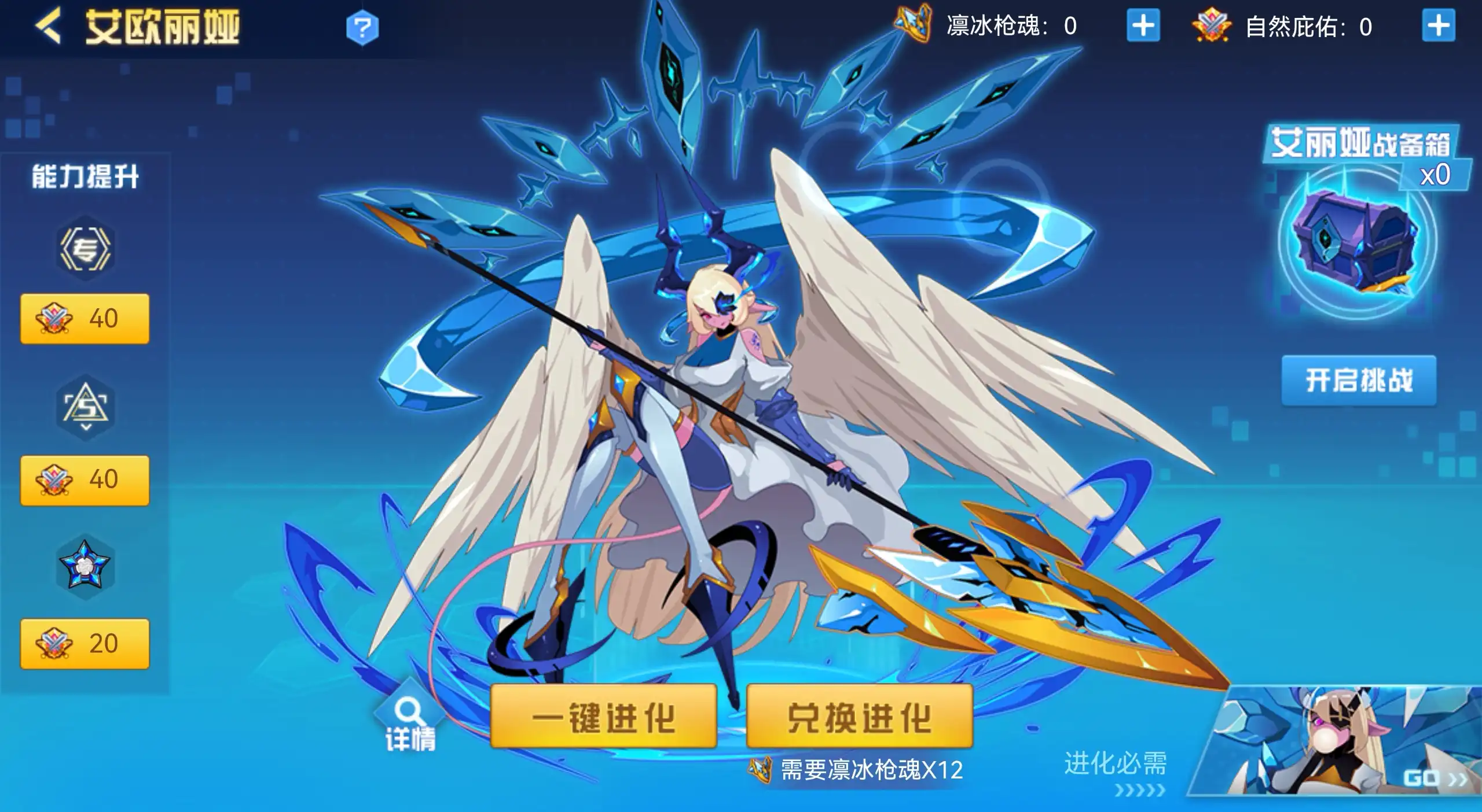 有了艾丽娅之后,就能参与下一个阶段的进化任务,每天完成指定的挑战任务后,就能得到一定数量的自然庇护和凛冰枪魂,使用这两样道具,就能将艾丽娅进化为艾欧丽娅,同时还能兑换到一些专属的刻印。