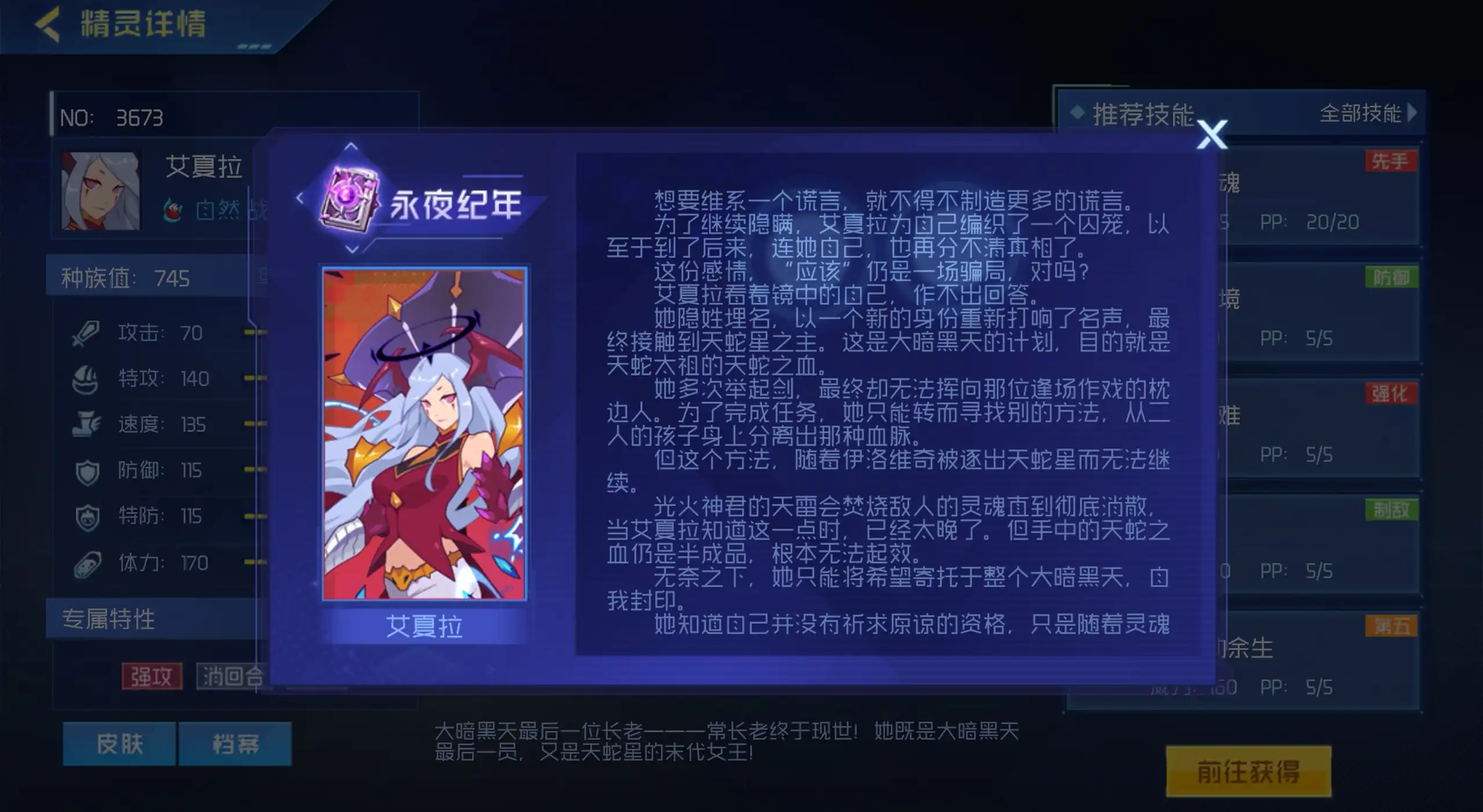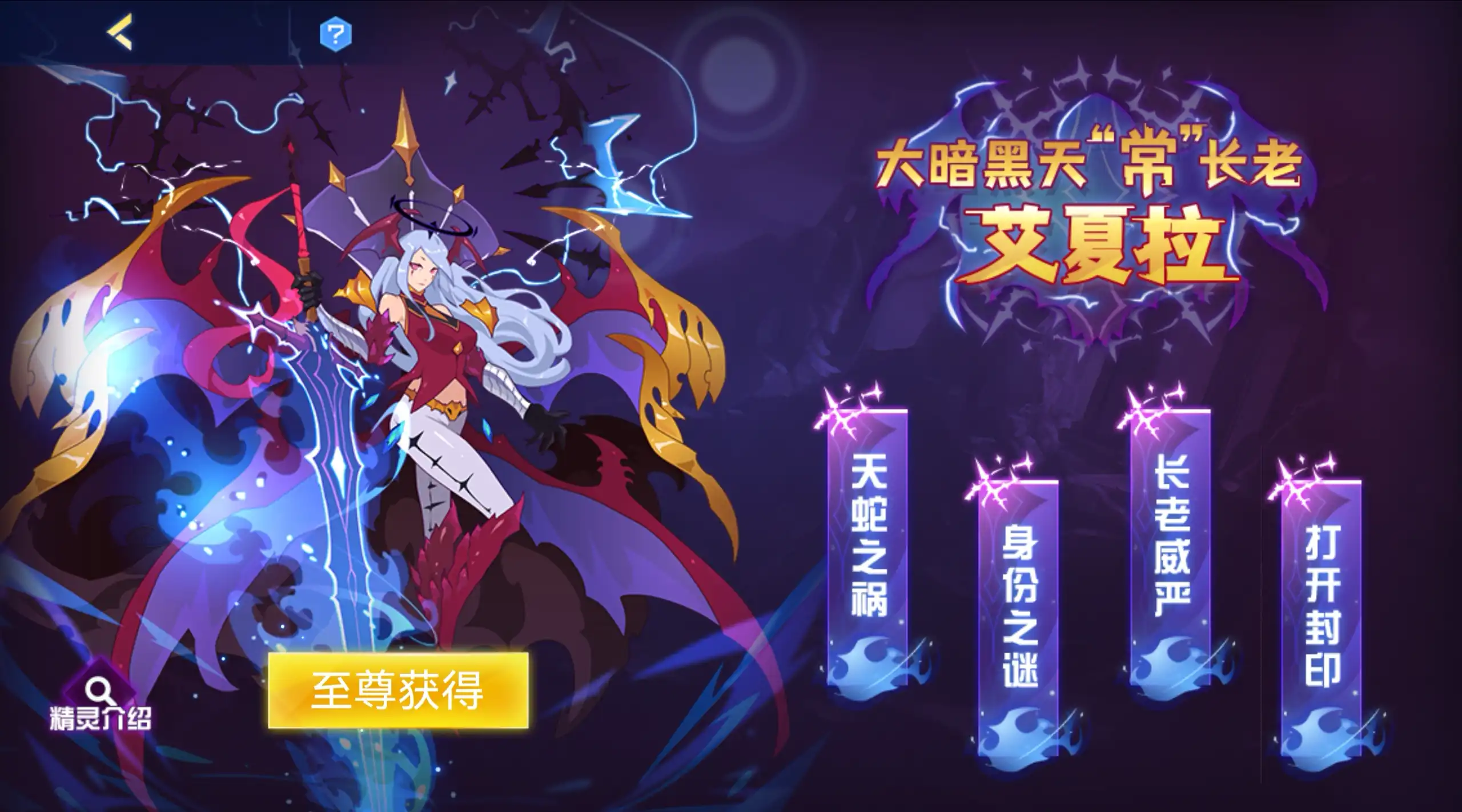 要是你感觉艾夏拉这个精灵不错,想要试一试,那么只需完成天蛇之祸、身份之谜、长老威严和打开封印这四个任务,接着就能得到艾夏拉这个精灵了,这些任务每天只能做一个,玩家开始挑战其中的一个关卡后,当天就无法再继续挑战其他关卡了,所以在开始游玩前,大家要做好准备,防止自己卡关。