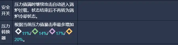 压力转换器:可以根据当前压力增加暴击数值,最多可以增加20点。