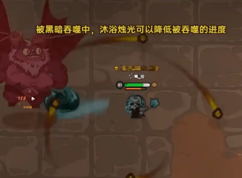 开局的第一阶段它是必放第三个招式,想要破解非常简单,我们可以故意被它的小蝙蝠咬上一口,或者踩上小蝙蝠死后留下的液体,这样就能让boss无法吸到一大口血,而小蝙蝠的伤害可以说微乎其微,而想要面对第四个招式最好携带回血道具,中招期间不用攻击专注点灯,第一个范围不高大家注意好保持距离就可以躲过,后续只要注意好点灯和击杀之间的配合就能顺利将其击败。