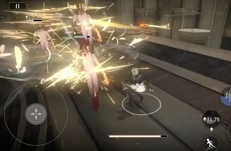 她的浮光出场攻击可以攻击向最近的敌人,打出22%的普通攻击伤害效果。被动“司书权限”在开启状态下,普通攻击能够得到强化便成为“辉刃”,零和安祖可以一同攻击,可以进一步提升攻击伤害,但是期间会消耗“翎光”,“翎光”消耗完之后强化状态便会消失。