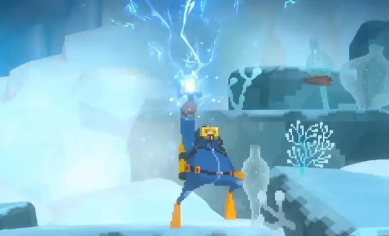 冰河区域有一定概率会遇到特殊冰川,用近战打碎可以得到雷神之锤,这个锤子的攻击方式是蓄力后水平丢出去,打中鱼的话会释放闪电。实战强度一般,但可以用来杀一杀小杂鱼,然后获取这个成就。