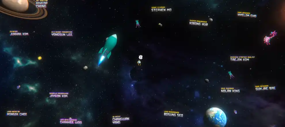 通关游戏主线后会进到宇宙里,在字幕结尾的时候,限定时间内用枪打掉20个开发人员的名字就可以得到这个隐藏成就,即便失败了也不碍事,可以后续在小游戏里继续完成。