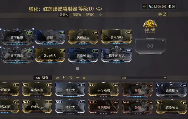 而如果想要提高武器的暴击概率以及伤害,那就最好带上弱点攻击以及弱点感应了;属性这块,建议选择病毒,污染弹夹,以及低温弹头,这两张都是毒属性的卡,还有一张冰属性的,都能增加喷火器的元素伤害。