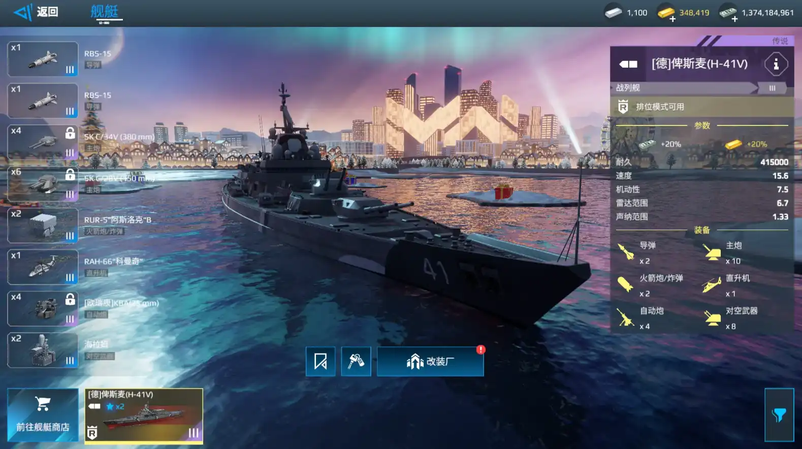 俾斯麦号战列舰配备了先进的反潜与导弹武器,点防空系统全面覆盖近程威胁。升级后的主炮与副炮火力更加强劲,并与强化的船体无缝集成,提升了战舰的生存能力与火力输出。