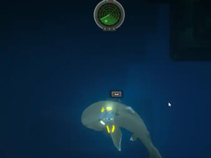 雷达会自动显示在屏幕上方。当你完成了培根博士的考古任务并成功获取雷达后,每次潜水,它都会伴随你左右。在屏幕上,你会看到一个类似秒表的小圆圈,上面有箭头和距离提示。箭头会指向目标,距离则显示你离目标还有多远。