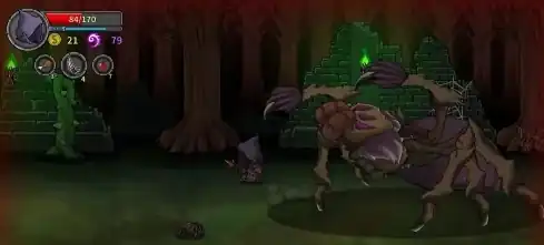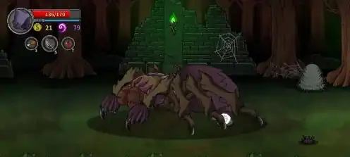 巨型蜘蛛的主要攻击方式是直线攻击,包含前爪攻击与有毒气弹,玩家需要通过不断移动来避免这种攻击,并保持一定的距离来防止被咬到。快速移动也会扰乱巨型蜘蛛节奏,使之陷入混乱,进而为玩家创造更大的进攻机会。