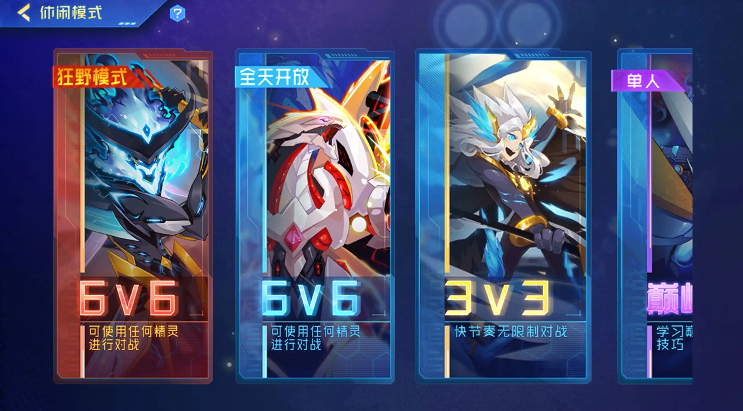 最后一种就是休闲模式,与上面传统的排位相比,这个模式的限制更少,玩家可用的精灵会更多,比如其中的6v6狂野玩法,你可以用任何精灵去参与,也会进行排名。还有3v3无限制快节奏对抗玩法,想要参加这个模式的话,你需要提前准备六只满状态满级别的精灵,并将它们放到背包中,接着就能去体验里面的内容了。此外,还有适合单人游玩的巅峰试炼赛,你可以借助这个玩法去熟悉规则,练习自己研究的套路,等到操作熟练后,再去和其他玩家进行联机比拼。