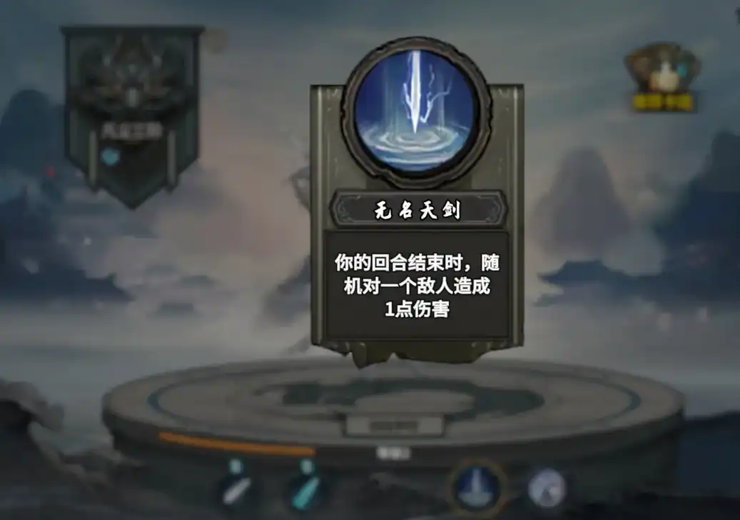 首先他的被动技能叫做无名天剑,当一个回合正式结束之后,又能够随机对一个敌人造成一点的伤害。虽然伤害并不高,但是累积下来之后就能够起到决定胜负的作用。所以我们可以尽量多打几个回合,这样在伤害积累方面可以获得更多优势。