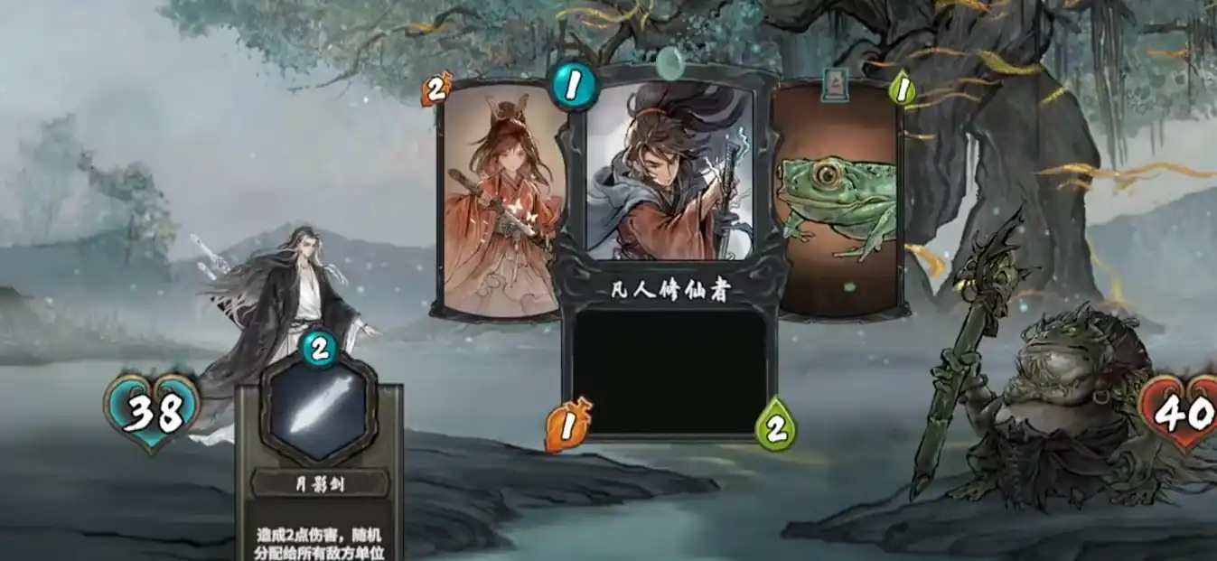 然后还有特殊招式月影剑,用了之后就可以直接对敌人造成2点伤害。并随机将伤害分配给其他所有的敌方单位。并且出剑的速度非常快,让对方无法直视。甚至化为一只只能待宰的青蛙,然后还有星河剑意。