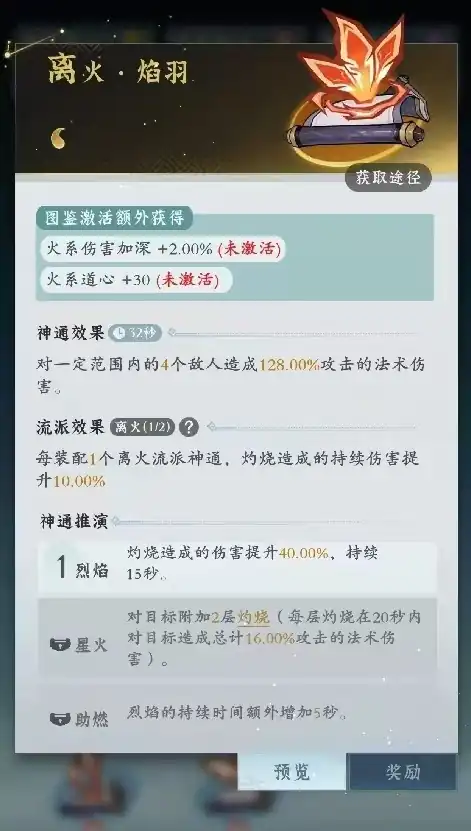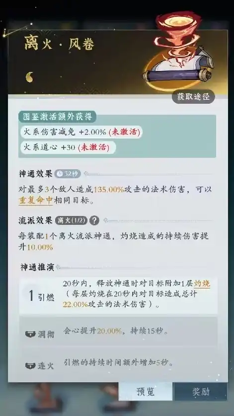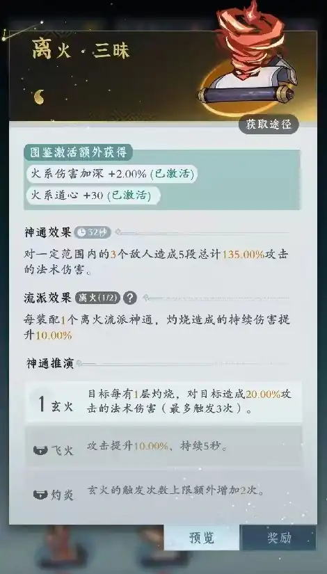 火修派系在装备4个火系神通之后,就能够激活玄炎法体,玄炎法体效果是提升神通造成的最终伤害,每拥有一层炽魂效果,额外提升最终伤害。该系特点是群体输出非常出色,而且还和灼烧相关,通过持续灼烧状态,对敌方造成总量很高的法术或物理伤害。在群体战斗中展现出了自身的强大输出能力,这样的特点无论是在pve还是pvp中都有着出色的发挥。简单来说,火修就是依靠持续AOE伤害来战胜敌人。其中火修中拥有两种不同玩法,分别是离火和天炉。