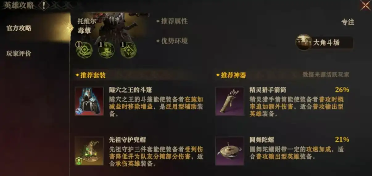 此外,托维尔的队长技“专注光环”在团队战斗中具有重要作用。在大角斗场的战斗中,专注是提升技能效果的关键属性,而托维尔的队长技可以为所有友方目标提升65的专注,使得队友的技能释放更加高效。尤其是当托维尔阵亡时,他还会为自己治疗15%最大生命值,增加了他在战斗中的生存能力,使得托维尔不仅能成为团队中的核心输出,还能在关键时刻为队友提供支持。这种技能组合让托维尔在任何战斗中都能发挥出色,无论是单挑还是团队协作,托维尔都能在其中占据重要位置。