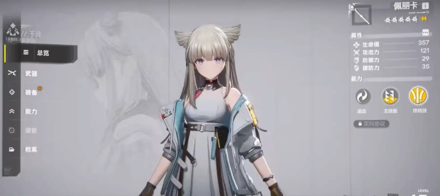 其中,佩丽卡作为新女主角,佩丽卡拥有独特的白发兽耳形象,体型娇小,职业为术师。她的右手上有一个发光的手镯,这一细节很可能与后续剧情紧密相关。佩丽卡是终末地工业的监督和官方发言人,负责管理和推进协议技术的开发和应用,同时也承担帝江号的管理工作。她能够果断且冷静地应对各种危机,为终末地的平稳发展竭尽全力。