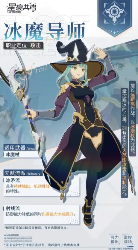 ⑤冰魔导师。定位为攻击角色,群体魔法伤害。其特点是擅长远距离作战,使用魔法杖。操作难度中等。可以选择冰矛流派,注重持续输出和机动性;或者射线流派,虽然防御能力降低,但能打出爆发性伤害。⑥森语者。定位为治疗与辅助角色。其特点是使用法环作为武器,可以走惩击流或愈合流。惩击流有一定攻击力,同时治疗队友;愈合流则专注于治疗和挂增益效果,适合团队中有大腿队友时选择。