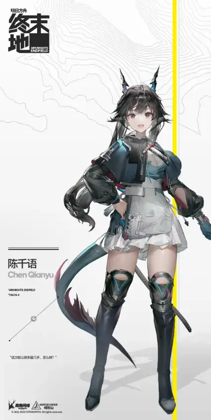 陈千语是特勤干员,作为真龙后裔,她的体质和天赋明显比常人更高,从小她就磨练武艺、研习战术,这些训练不仅让她有很高的战斗素养,还锻炼了同龄人中少有的心理素质,她的大招在释放后,首先会将敌人给击飞,随后就会对敌人展开连续8次的斩击,第一次会给目标添加破韧效果,之后的每一次都会让敌人承受一定的物理伤害。